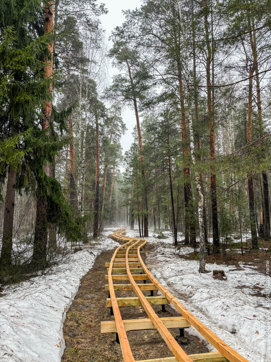 Экотропа в Сарове 03.04.26 сатис В Сарове делают экотропу: Старые Лес в тумане Новые Река Сатис в городе - 3 апреля
