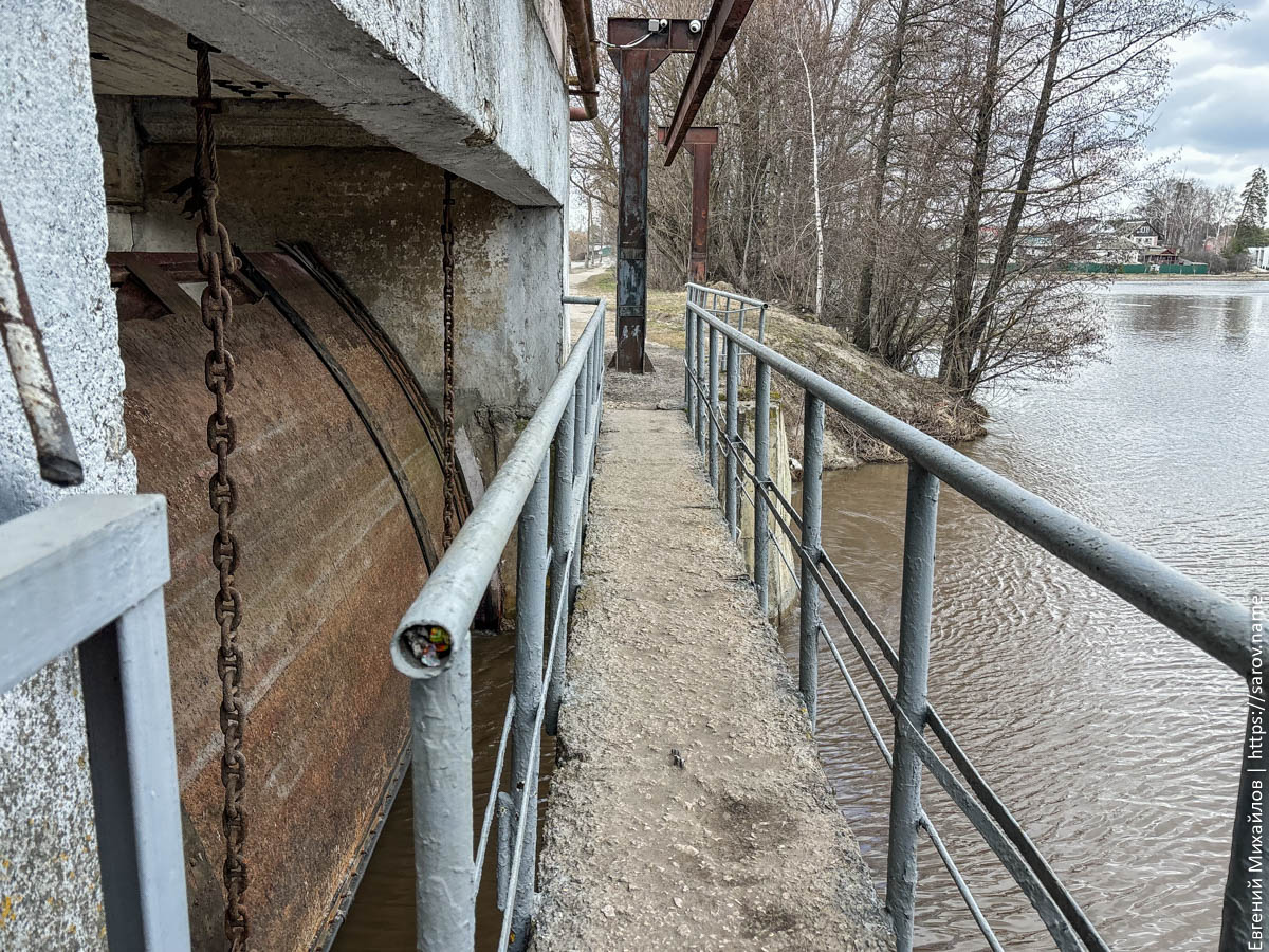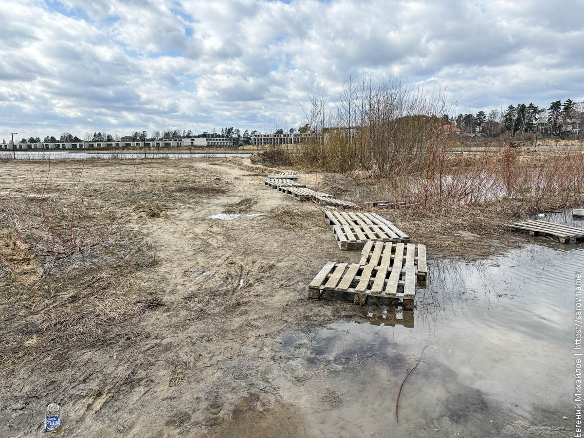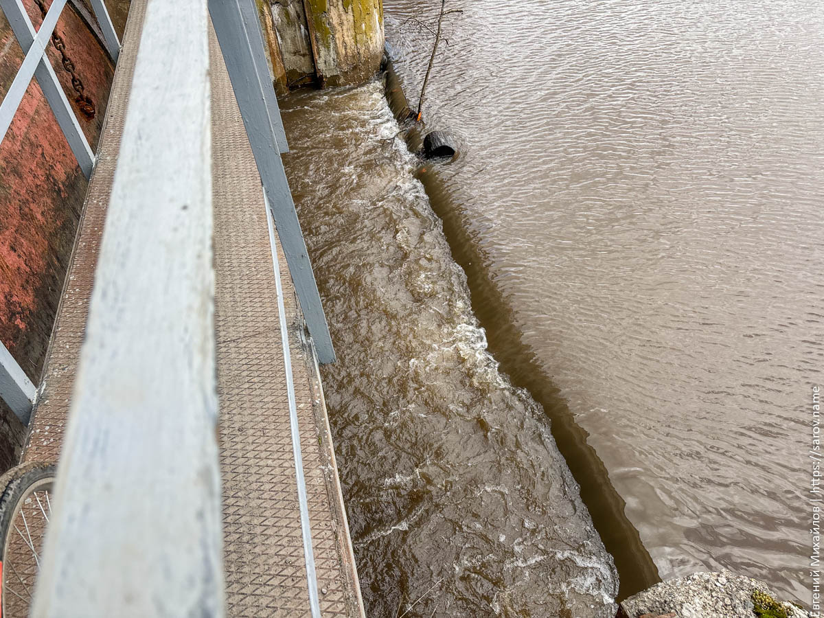 Около понтонного моста лужа стала поменьше. Правда сам мост разобран, пройти по нему нельзя: