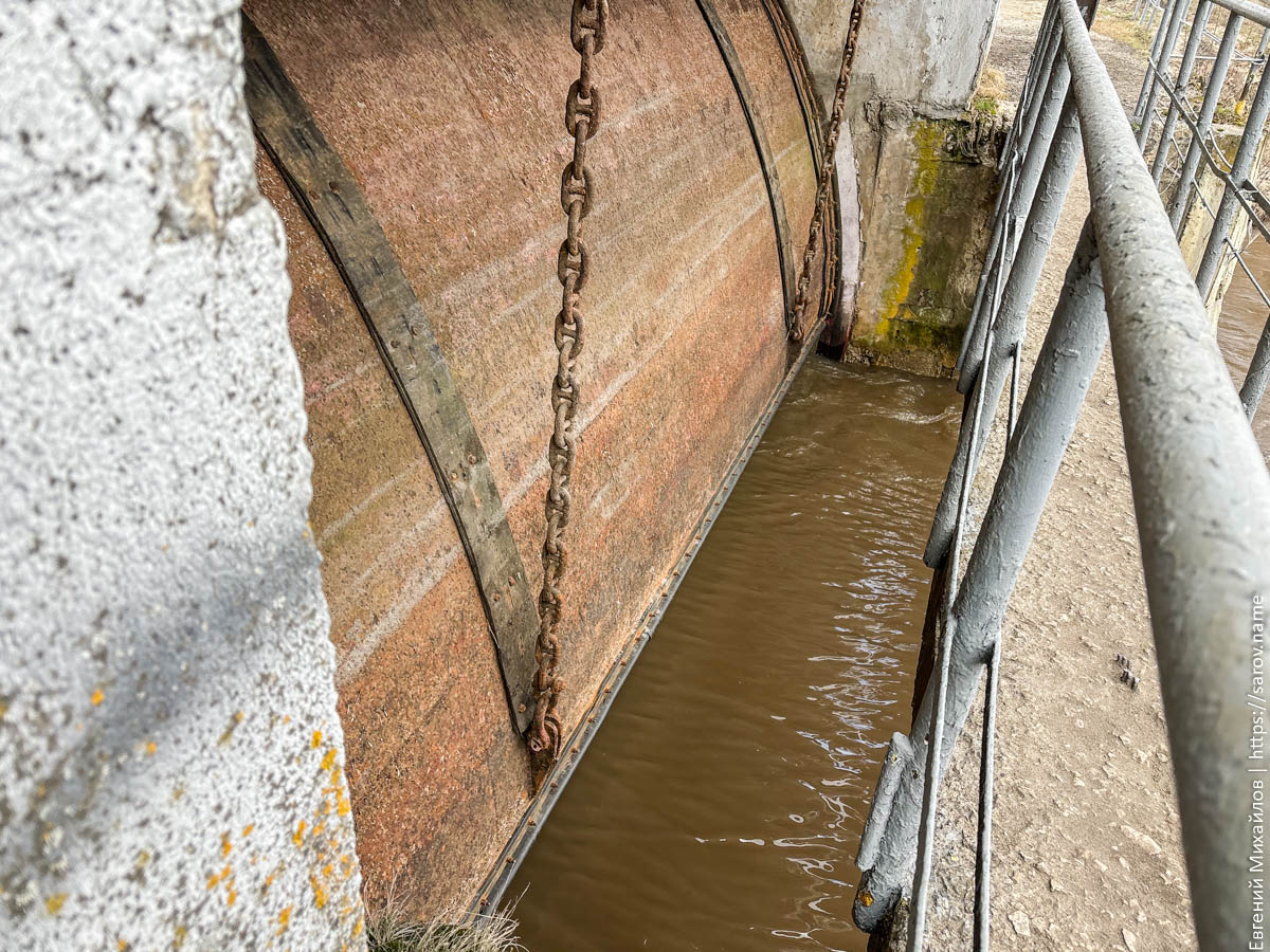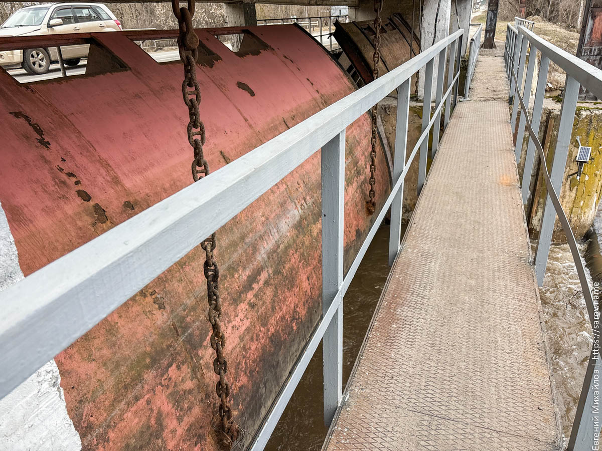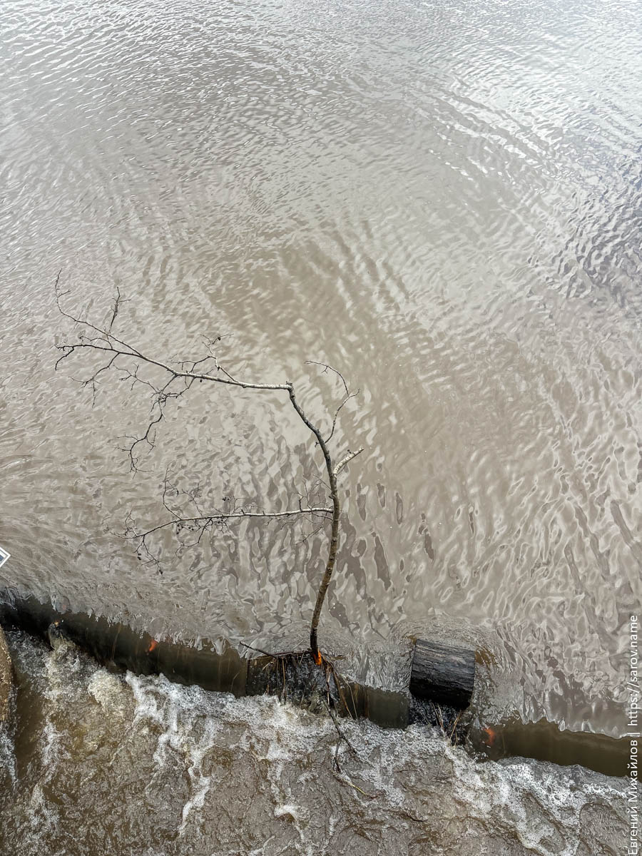 Около понтонного моста лужа стала поменьше. Правда сам мост разобран, пройти по нему нельзя: