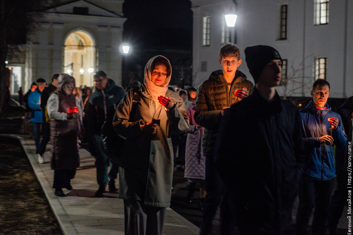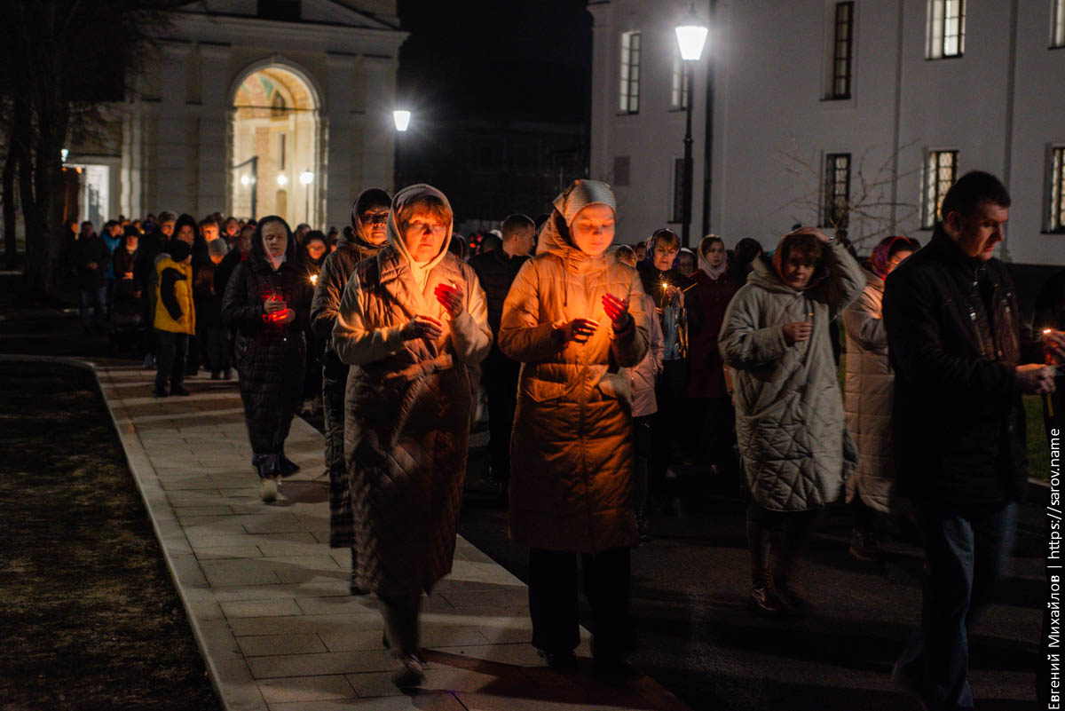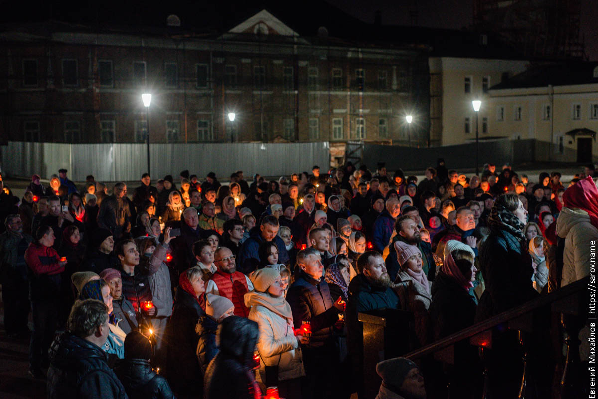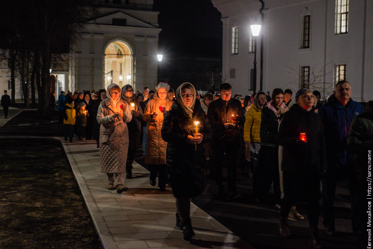 В ночь на воскресенье в Сарове прошли Пасхальные крестные ходы. Я наблюдал за тем, который проходил на монастырской площади: