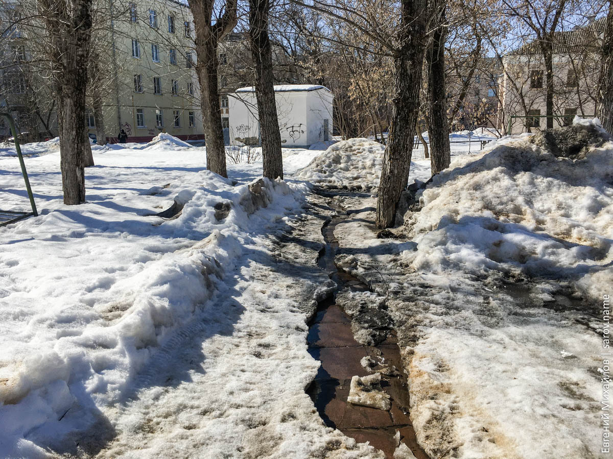 Некоторые дворы от него очищают. Оценить толщину льда во дворах можно будет в конце этой записи: