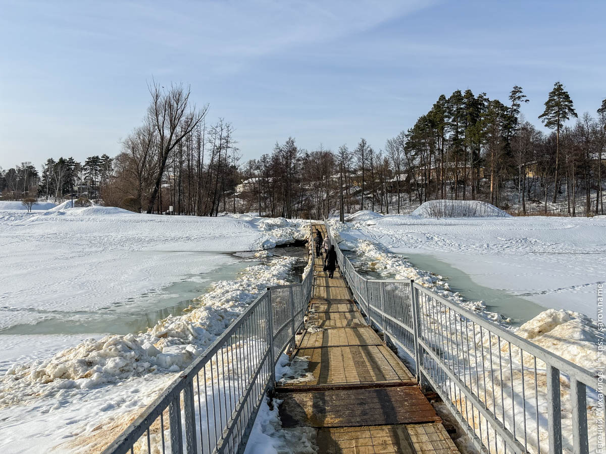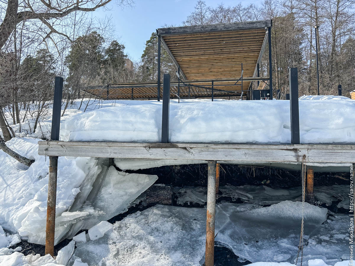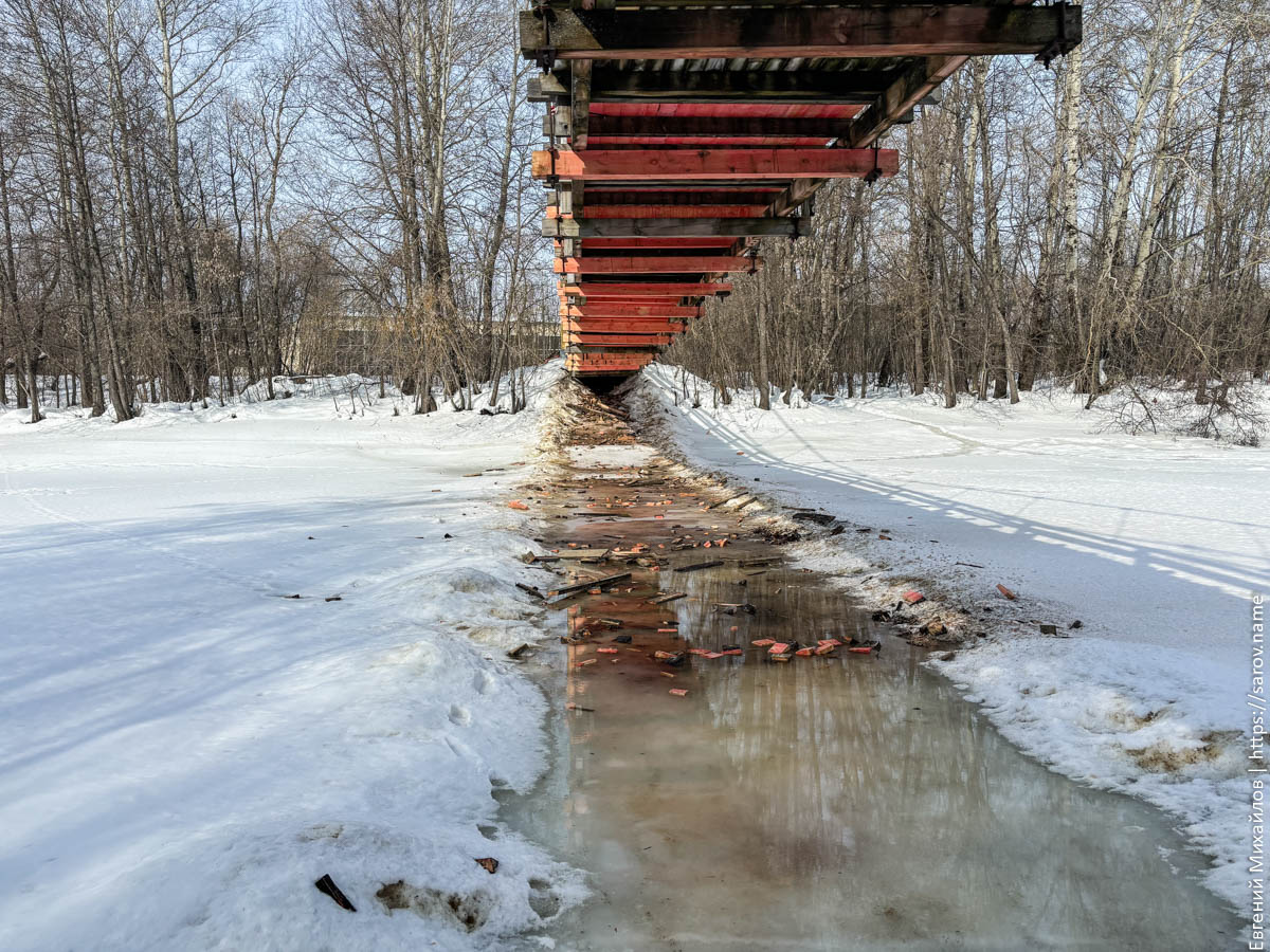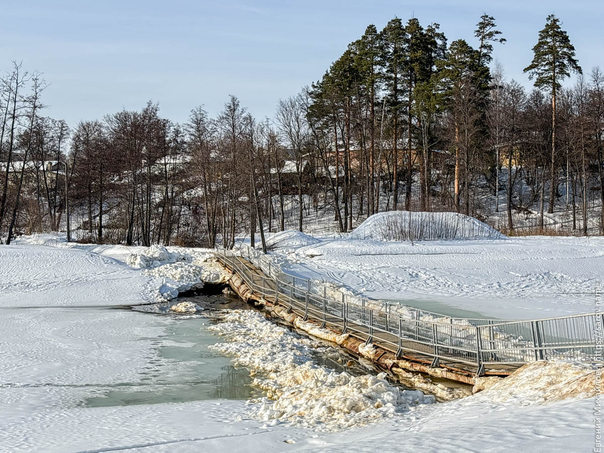 Висячий мост тоже стал сильно выше льда: