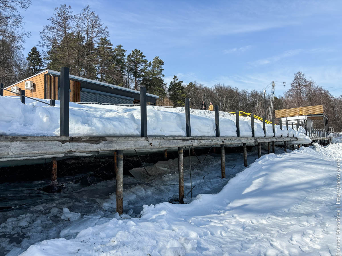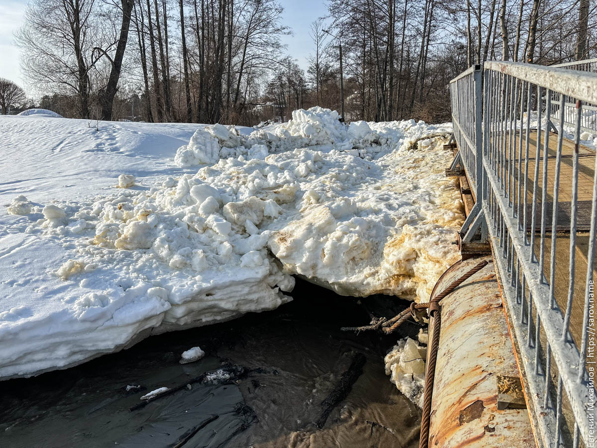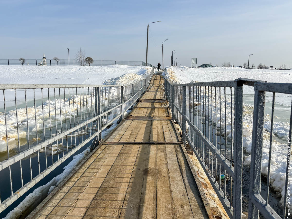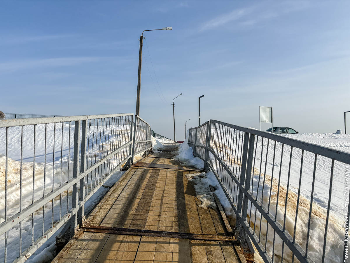 Особенно хорошо понижение уровня видно у понтонного моста, который сильно просел и теперь выглядит так:
