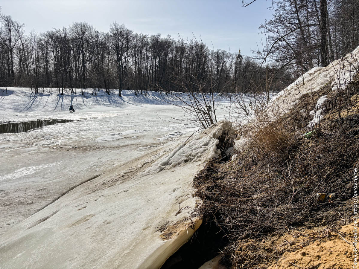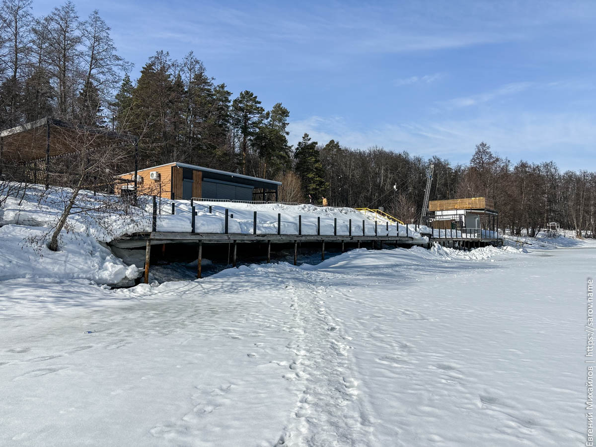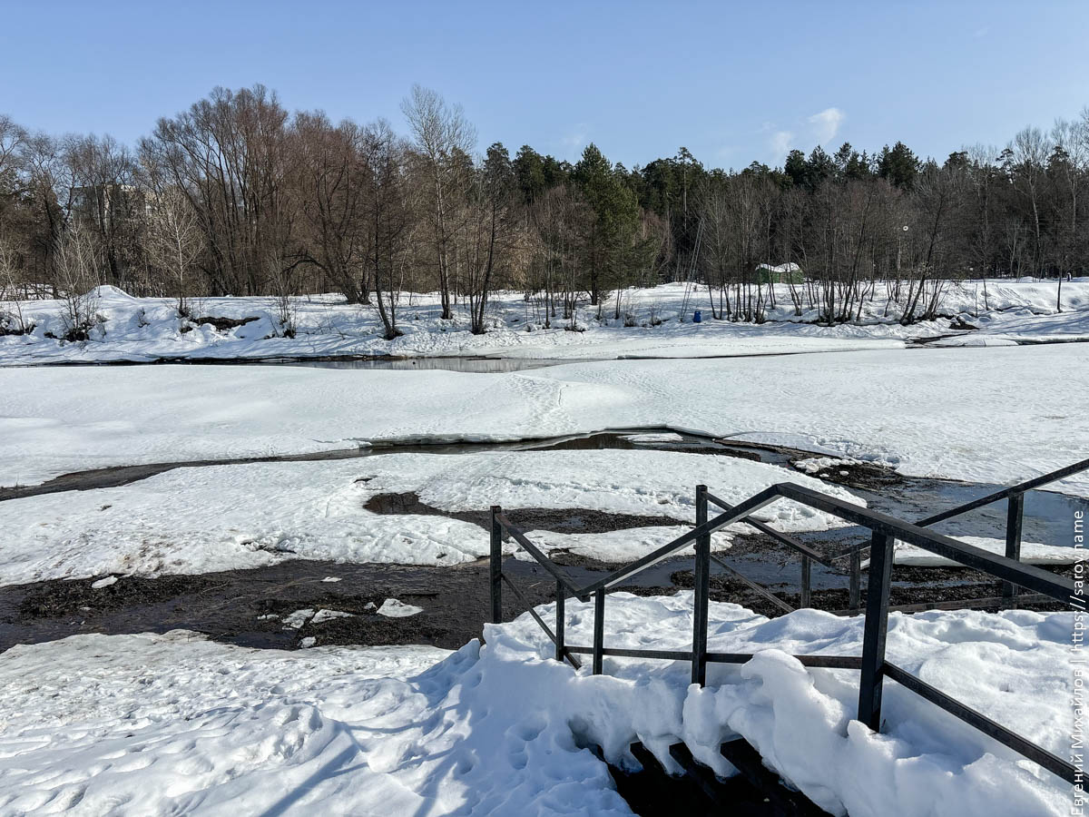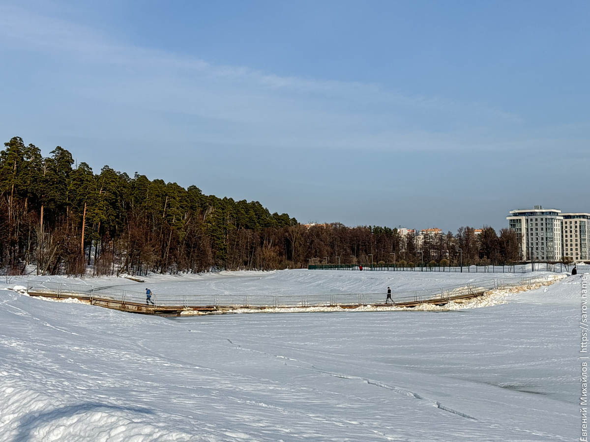 Особенно хорошо понижение уровня видно у понтонного моста, который сильно просел и теперь выглядит так: