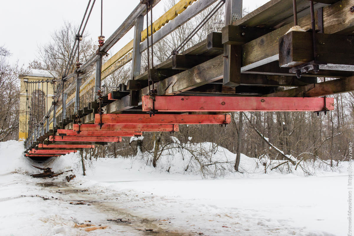 В Сарове с 24 февраля ремонтируют Висячий мост. Решил сходить и сфотографировать процесс ремонта: