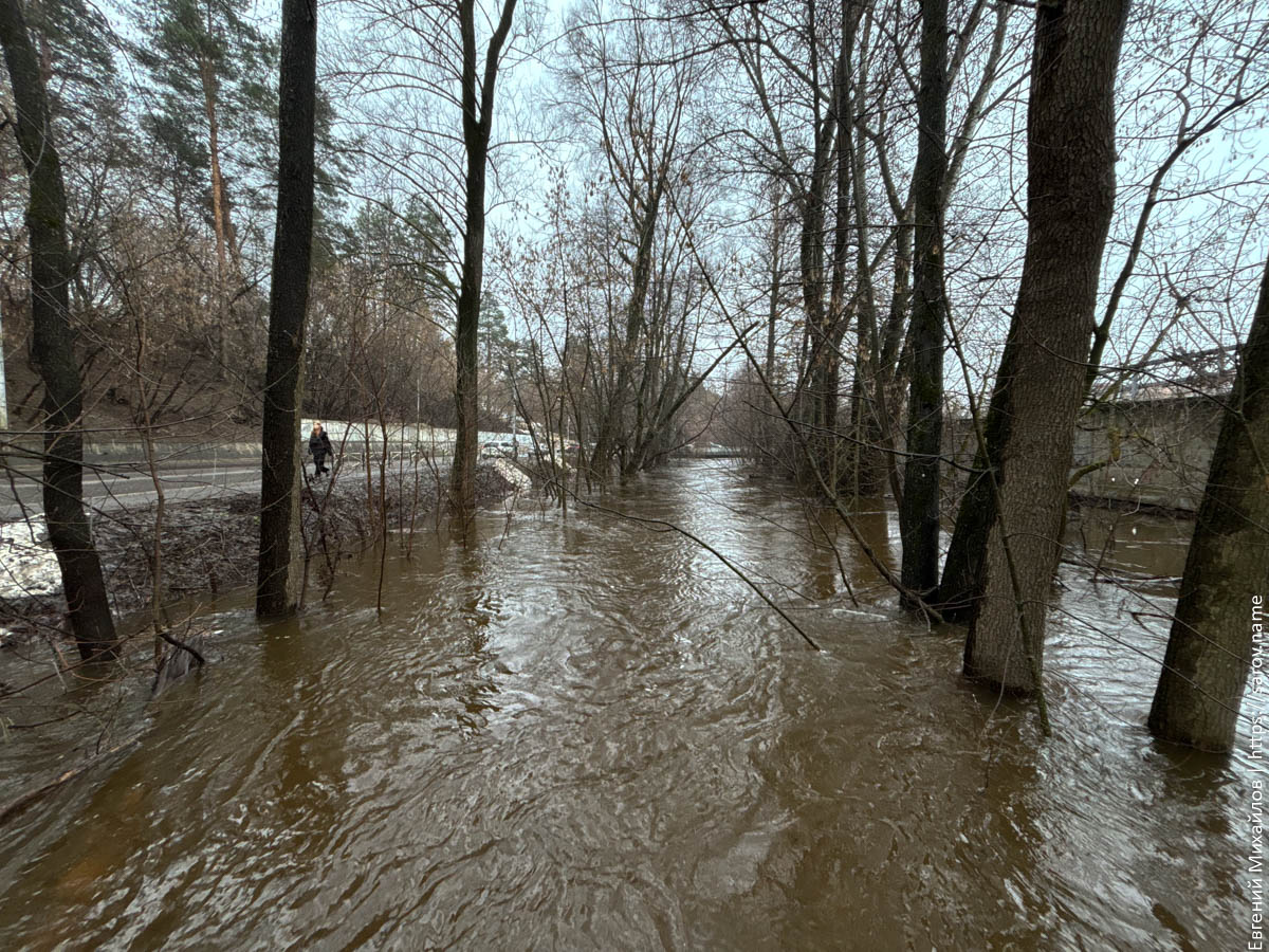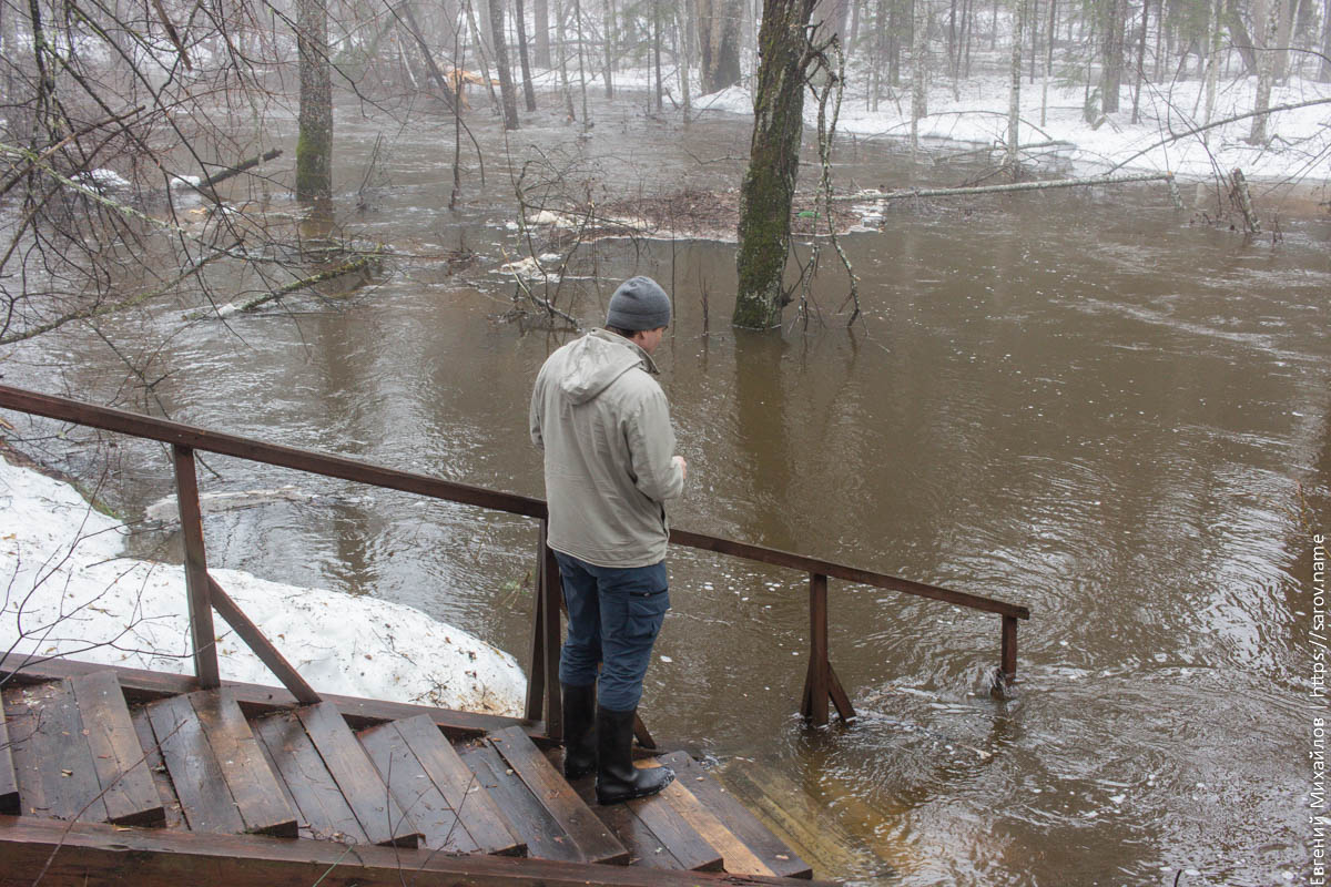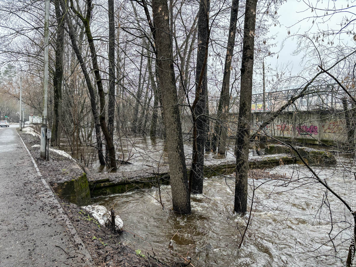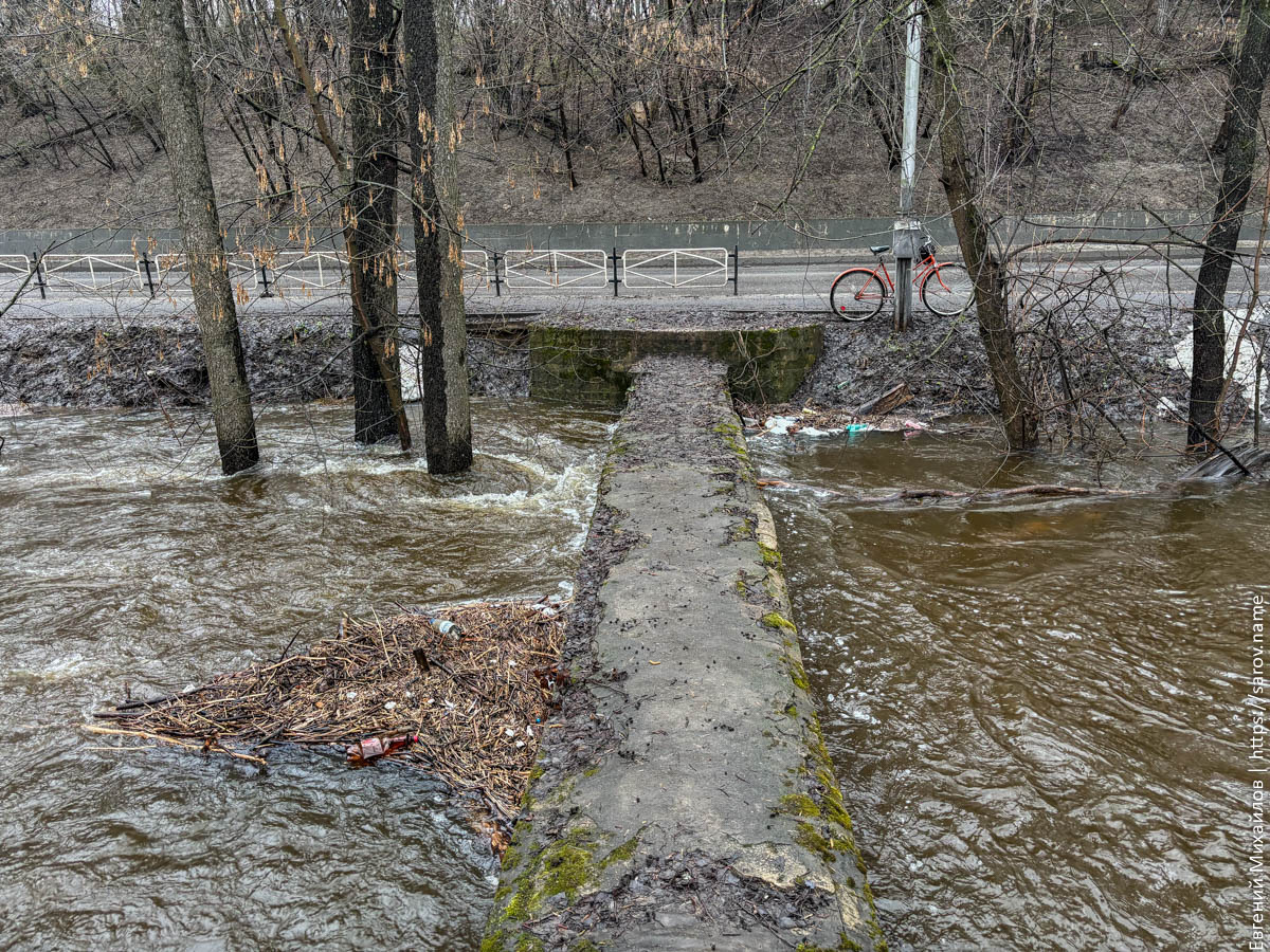 Оказалось, что пешеходный мост уже полностью затоплен.