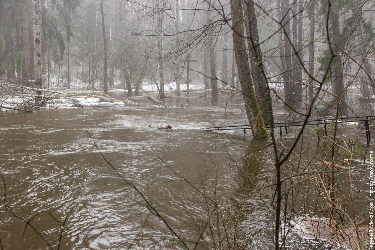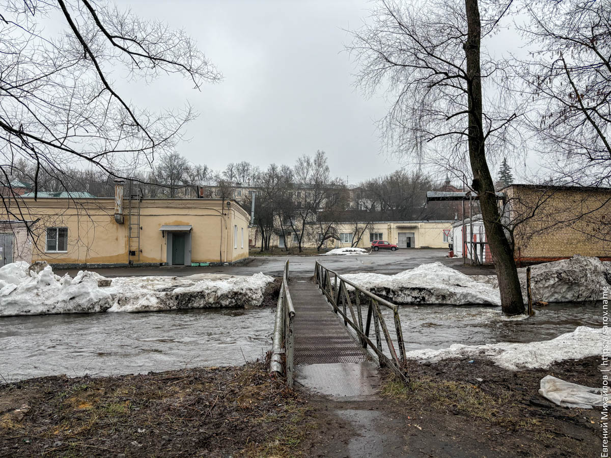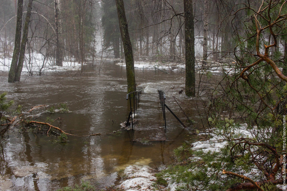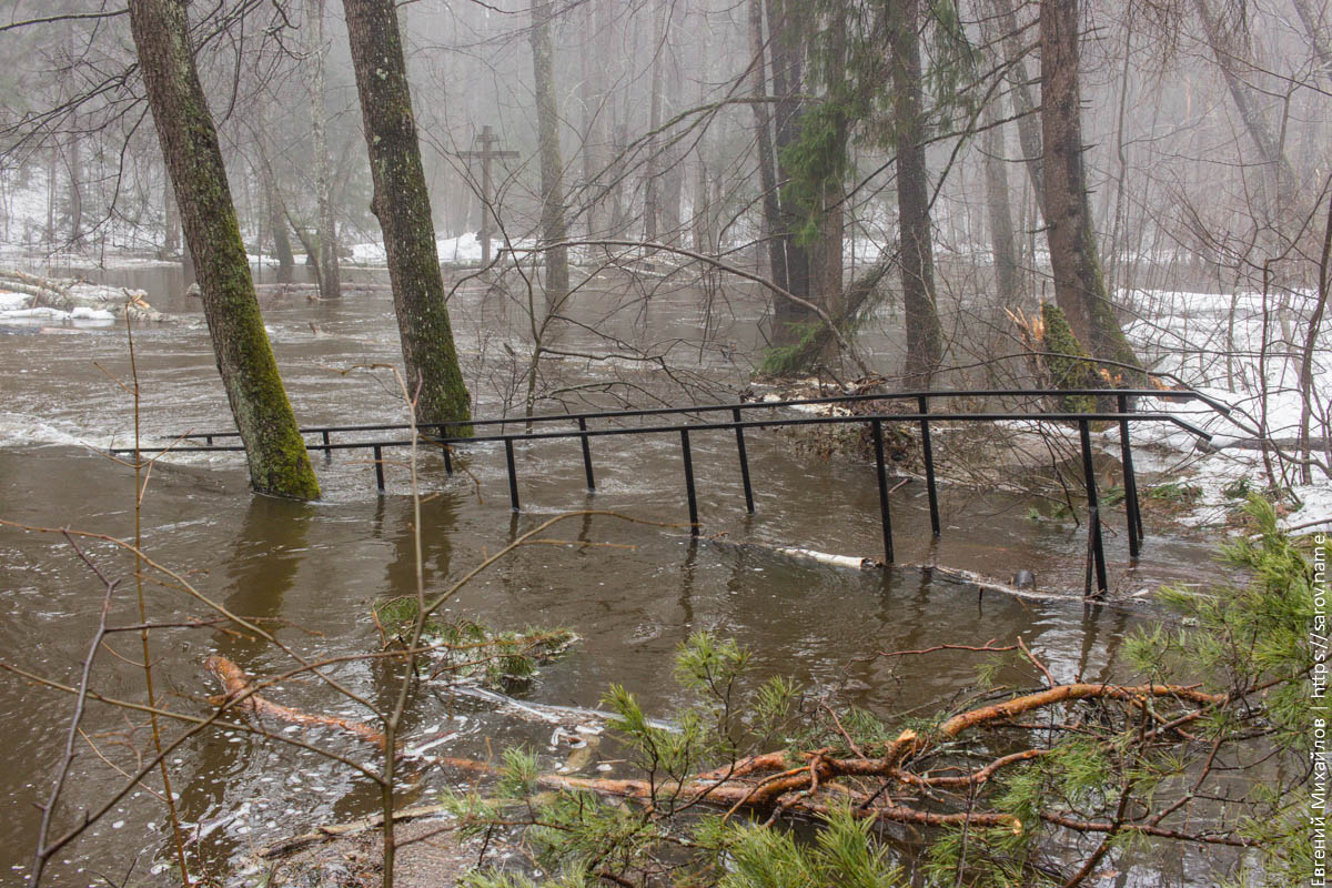 Оказалось, что пешеходный мост уже полностью затоплен.