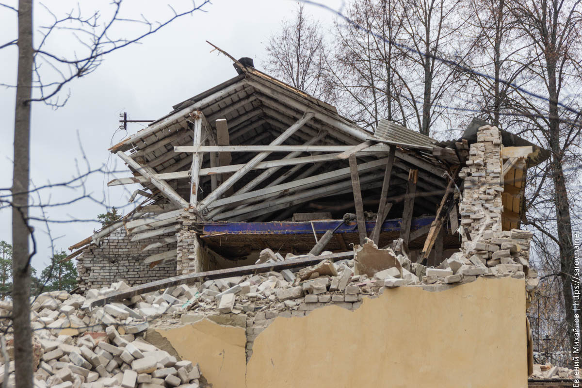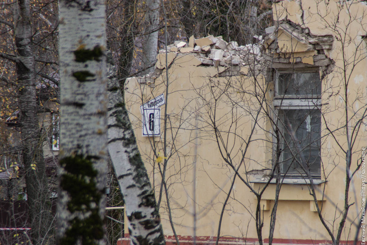 22 октября узнал, что дом № 6 на Пионерской улице сносят. Поехал поснимать его вечером того же дня и утром следующего. В начале поста фотографии, сделанные утром 22 октября. Вечерние фотографии внутренностей здания идут после утренних: